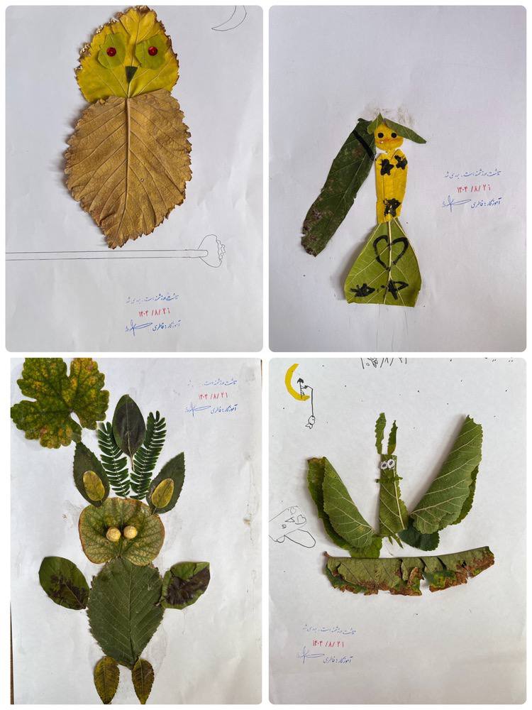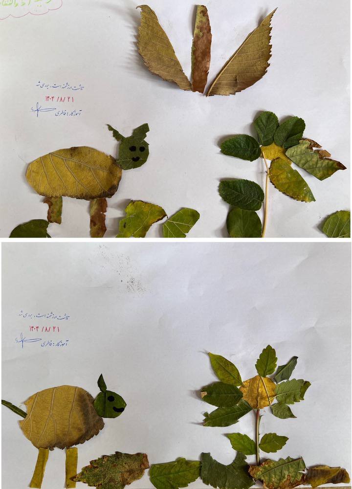 در زنگ زیبای هنر، دانشآموزان کلاس سوم رز خانم فاطری با الهام از طبیعت پاییزی و با استفاده از برگهای رنگارنگ، اثرات هنری خلاقانه و زیبایی آفریدند. این فعالیت نه تنها حس هنر را در بچهها تقویت کرد، بلکه آنها را با زیباییهای فصل پاییز نیز بیشتر آشنا ساخت.